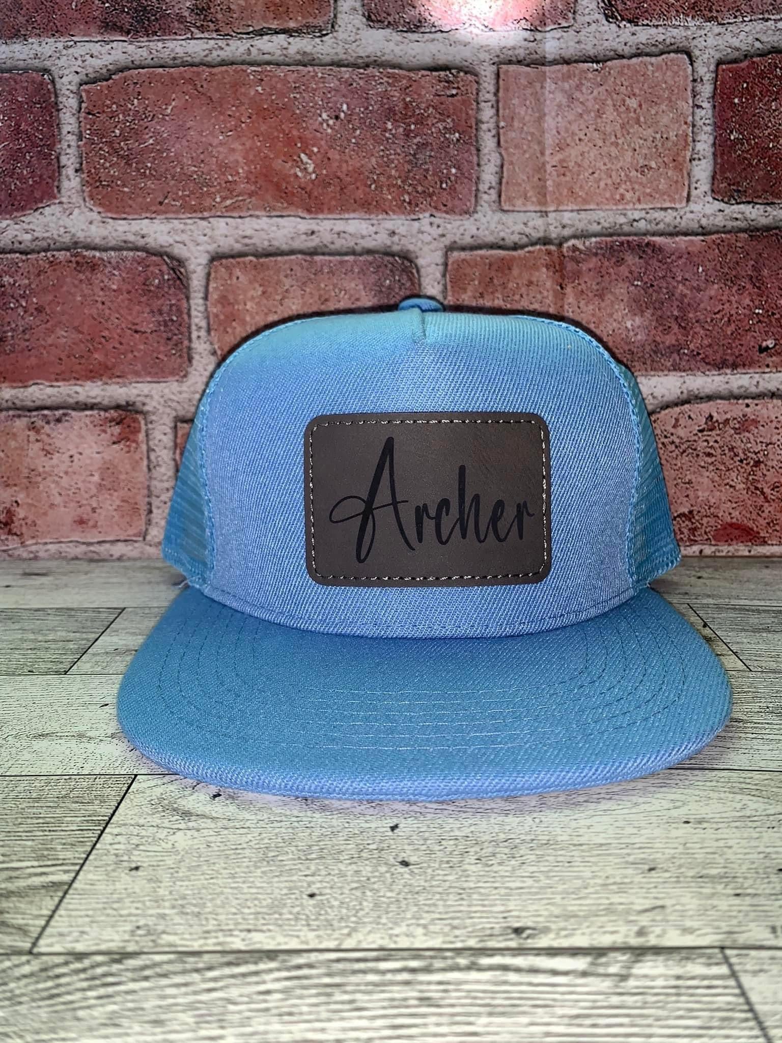 You do not get to pick the color of the hat or patch. You only pick cursive or print for the font style.